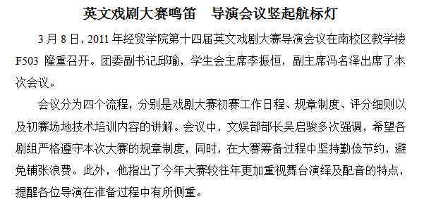 英文戏剧大赛鸣笛 导演会议竖起航标灯