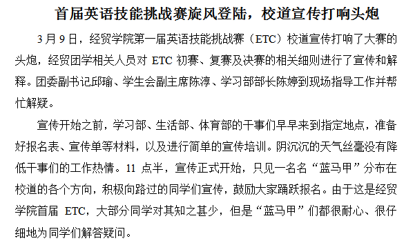 首届英语技能挑战赛旋风登陆,校道宣传打响头炮
