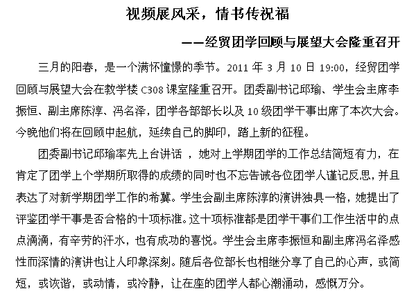 视频展风采,情书传祝福――经贸团学回顾与展望大会隆重召开