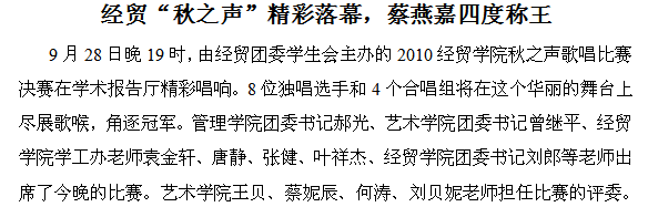 经贸“秋之声”精彩落幕,蔡燕嘉四度称王
