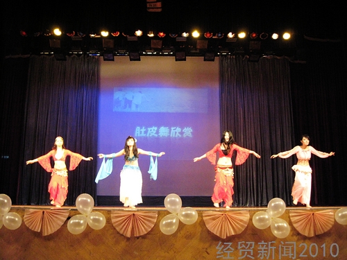 晚会上,老师们也给毕业生带来了精彩的表演。国贸4+1的四位女生性感的肚皮舞表演之后,陈健老师应在场员工要求大胆风趣地模仿起肚皮舞,获得全场热烈的尖叫声。