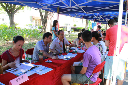 2015年6月20日上午9点,太阳城娱乐城第十六届“大学开放日”咨询活动在北校区热烈举行。本届开放日南北校区共有十八个公司设立了咨询摊位,各公司老师纷纷坐镇,为考生和家长解答相关报考问题。