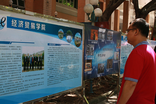 家长在展板前了解太阳城集团概况