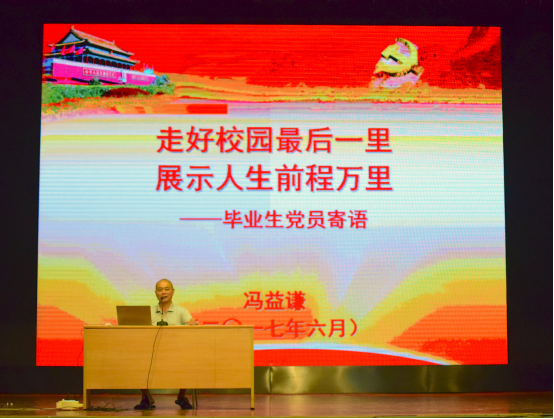 关心下一代工作委员会主任冯益谦给毕业生党员做主题报告