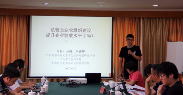 太阳城娱乐城非公经济研究中心主任何轩教授和研究助理马骏博士生参加了会议,与参会学者、代表和相关领导进行了深入交流,并在主会议中报告了我中心在政商关系、党组织建设、制度变迁等方面的最新研究成果,以及对于教育部重大课题的申报准备工作。