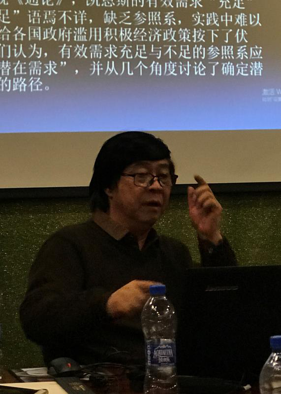 接下来刘巍教授讲述了中国计量经济史研究中心如何秉承刘先生的学术志愿,坚持用经济学方法研究经济史,目前主要在以下两个方面略有所得:一是连续10年坚持出版和向国际国内的经济史学者们寄送了内刊《中国计量经济史研究动态》,获得许多好评。二是研究了近代中国经济和一些主要发达国家的宏观总态势,考察了国际贸易条件和柯布道格拉斯生产函数在具体时代环境当中的适用性,凯恩斯的投资函数,并且就上述问题已经陆续发表了若干论文和专著。