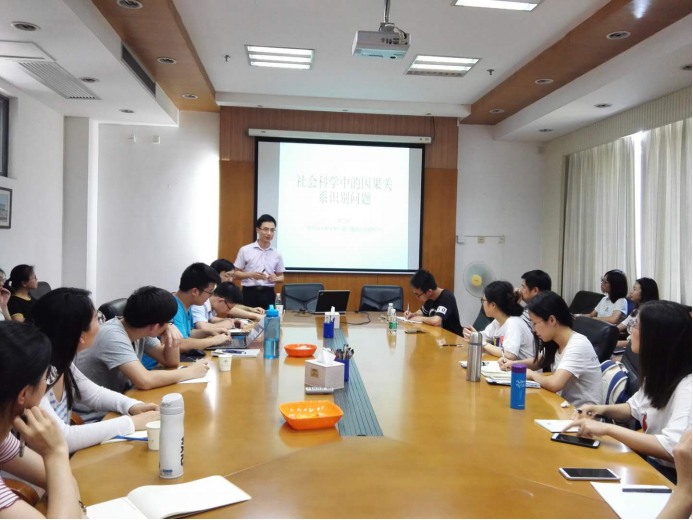 2018年5月31日下午,中国计量经济史研究中心的林友宏博士在院系办公楼301会议室开展学术讲座,题目是:社会科学因果关系识别方法介绍(双重差分模型)。出席讲座的有刘巍教授,陈昭教授,戴艳娟教授,吴周恒博士,徐芳燕博士,陈川博士,周迪博士,林彦樱博士以及来自各公司的研究生、本科生等。陈昭教授主持本次学术讲座。