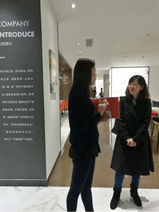 (唐静参观展厅后与广东宏陶陶瓷有限公司人员交流)