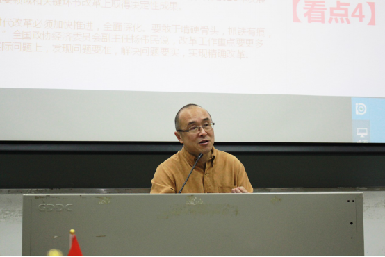 公司经理张建武教授为员工们作“2019两会精神及热点解读”专题讲解。首先,张建武对2019两会进行了基本概述。他指出,两会不仅是我国政治生活的一件大事,更与人民生活息息相关。他倡导员工们关注两会并积极对时事热点进行深入思考。