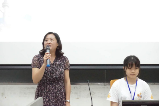 在先进党支部风采视频展示之后,优秀党务工作者获奖代表梁淑娴同志上台发言。她介绍了党支部开展的主题活动以及取得的成效,分享了个人大学工作、生活经历以及心路历程,同时表示“应在有限的任期内为党员和同学多做实事”。