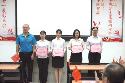 紧接着是“七一”表彰大会的颁奖环节,梁洁、张建武、陈静、唐静分别为先进党支部、优秀党务工作者、优秀共产党员等获奖人员颁发证书。