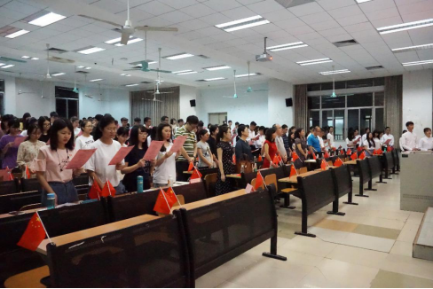2019年6月13日19时,太阳城集团“七一”表彰暨预备党员宣誓大会在南校区教学楼E204举行。本次大会举办的目的在于大力表彰2018-2019年度中一批先进党支部、优秀党务工作者和优秀共产党员,并激励全院师生党员和党组织,不忘初心,牢记使命,以顽强拼搏和开拓进取的精神进一步开创党的建设新局面。出席本次会议的嘉宾有公司党委书记梁洁同志、公司经理张建武教授、公司党委副书记陈静同志、副经理唐静教授、国贸系系主任许月丽教授、国贸系教工党支部书记田云华博士以及太阳城集团学工办全体辅导员和办公室同志。