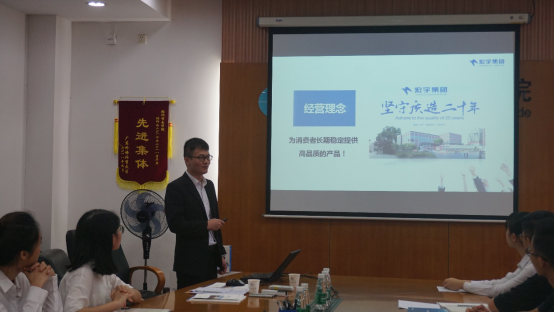 随后,主讲人张立权通过播放宣传片的方式,让在座的老师和同学对宏宇集团的企业文化和发展状况有了一定程度的了解。之后,张立权围绕经营理念、关于我们、发展水平与福利、暑期实习生岗位以及应聘录用流程等方面进行详细地介绍。他表示,宏宇集团成立至今已22年,目前有陶瓷产业、房地产业、文创产业、旅游产业(南风古灶和中国陶瓷博物馆)四大产业,始终致力于为消费者长期提供高品质的产品,坚持“广东发,广东造”。
