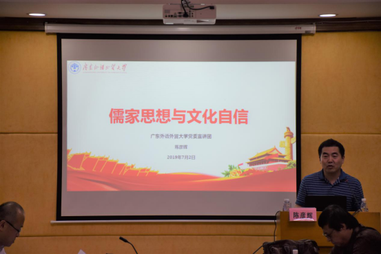 会上,陈彦辉从文化自信的背景和孔子的思想智慧两个方面进行了解读。他提到,当今开放的世界必然存在文化交流与碰撞,加上国内正处于改革开放新时期和中国发展的黄金期。因此,以习近平同志为核心的党中央以“四个自信”推进中国特色社会主义事业。陈彦辉从孔子的生平事迹、人与鬼神、天命与命、孝道与人生和哲学思想详细介绍了孔子的思想智慧,弘扬儒家思想中,重建文化自信。