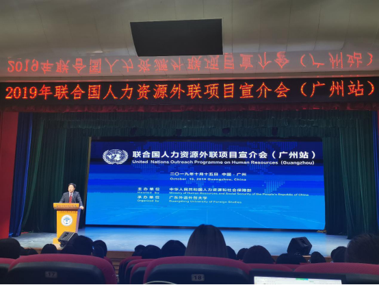 2019年10月15日上午,2019年联合国人力资源外联项目宣介会(广州站)在公司北校区第六教学楼学术报告厅举行,国际治理创新研究院经理赵龙跃教授主持了本次宣介会,石佑启董事长和国家人力资源和社会保障部国际交流服务中心付跃钦主任分别致辞。公司国际组织创新班19级的全体同学参加了这次宣介会。