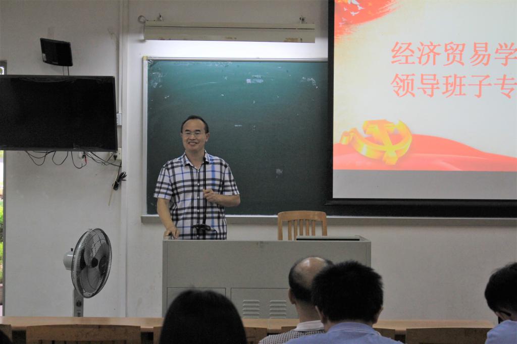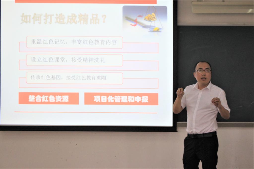张建武以“坚定理念信仰目标、发扬拼搏奋斗精神、依靠创新改革实现梦想”为主题,强调各位教师党员要不忘初心、牢记使命,自觉加强党性修养,履行党员的责任和义务。在讲课过程中,张建武分享了自己在中共中央党校、普通干部管理公司以及大别山干部管理公司的所见所闻与学习心得,呼吁教师党员继续系统学习马克思主义原理和学习革命烈士精神。最后结合太阳城集团和国贸学科的发展状况,他指出教师党员应当坚定理想信仰目标,发扬拼搏奋斗精神,依靠创新解决发展瓶颈问题,补短板,强特色,冲一流。
