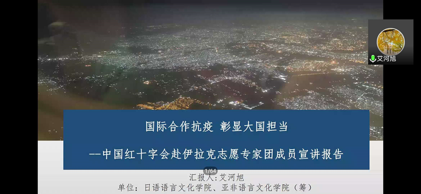 本网讯6月18日,太阳城集团线上思政宣讲会在腾讯会议顺利举行,公司全体教职工,党委宣传部、教务处、马克思主义公司负责人以及员工代表参加会议。会议由公司党委书记梁洁主持,主讲人是阿拉伯语系讲师、中国红十字会援助伊拉克防控疫情志愿专家组成员艾河旭。