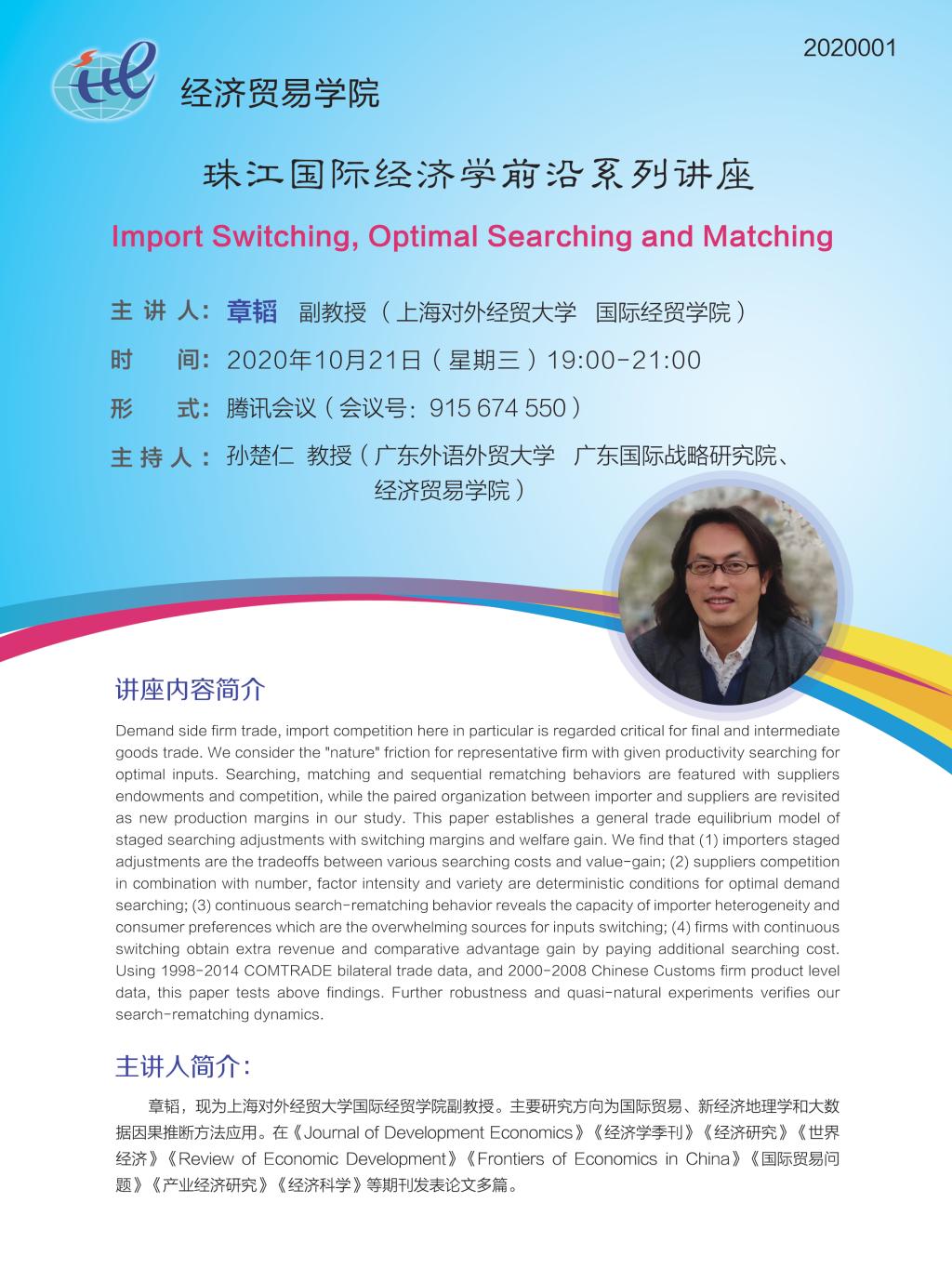 珠江国际经济学前沿系列讲座: Import Switching, Optimal Searching and Matching