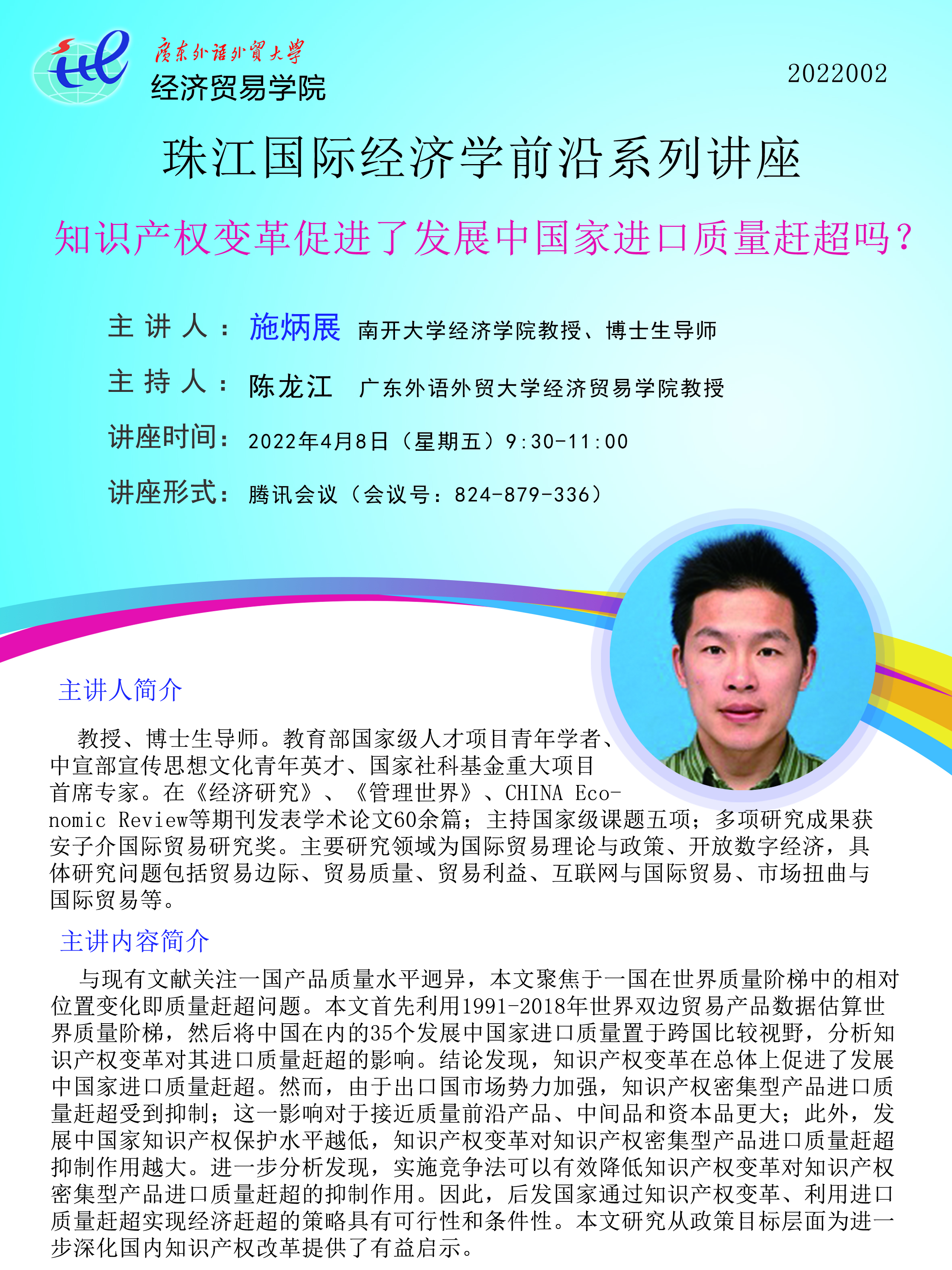 珠江国际经济学前沿系列讲座(2022002):知识产权变革促进了发展中国家进口质量赶超吗?