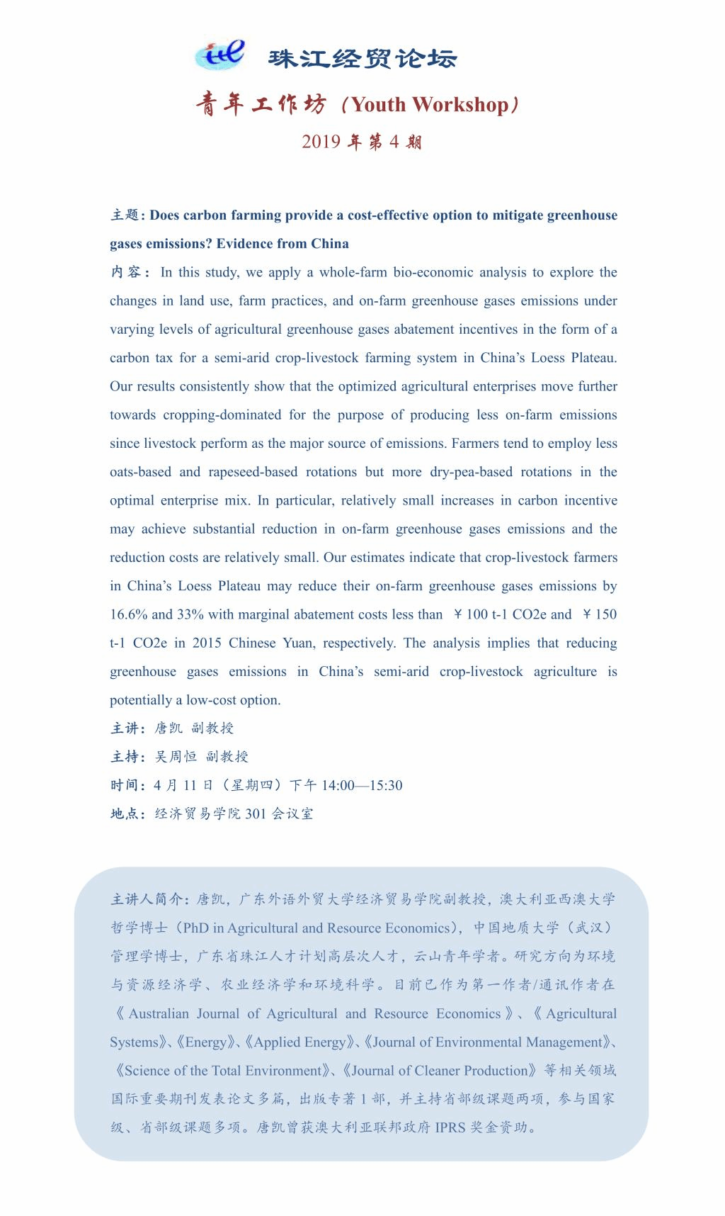 珠江经贸论坛-青年工作坊:Does carbon farming provide a cost-effective option to mitigate greenhouse gases emissions? Evidence from China