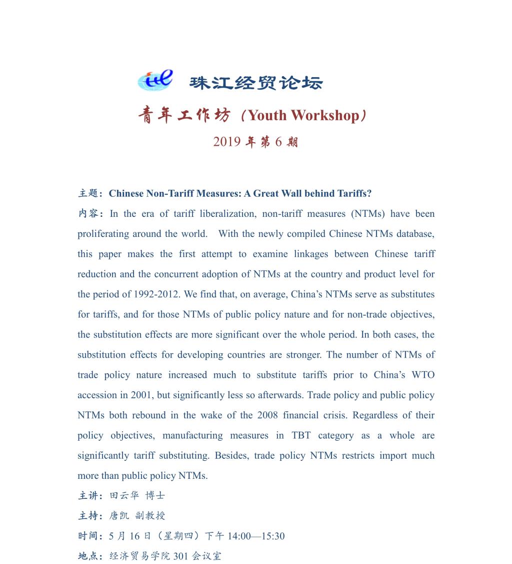 珠江经贸论坛:Chinese Non-Tariff Measures:A Great Wall behind Tariffs?