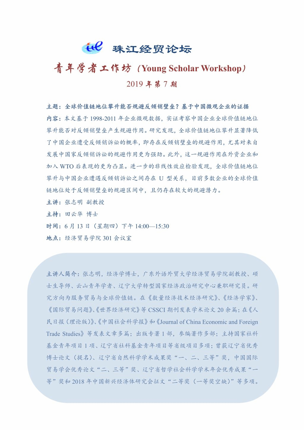 珠江经贸论坛-青年学者工作坊(第7期):全球价值链地位攀升能否规避反倾销壁垒?基于中国微观企业的证据
