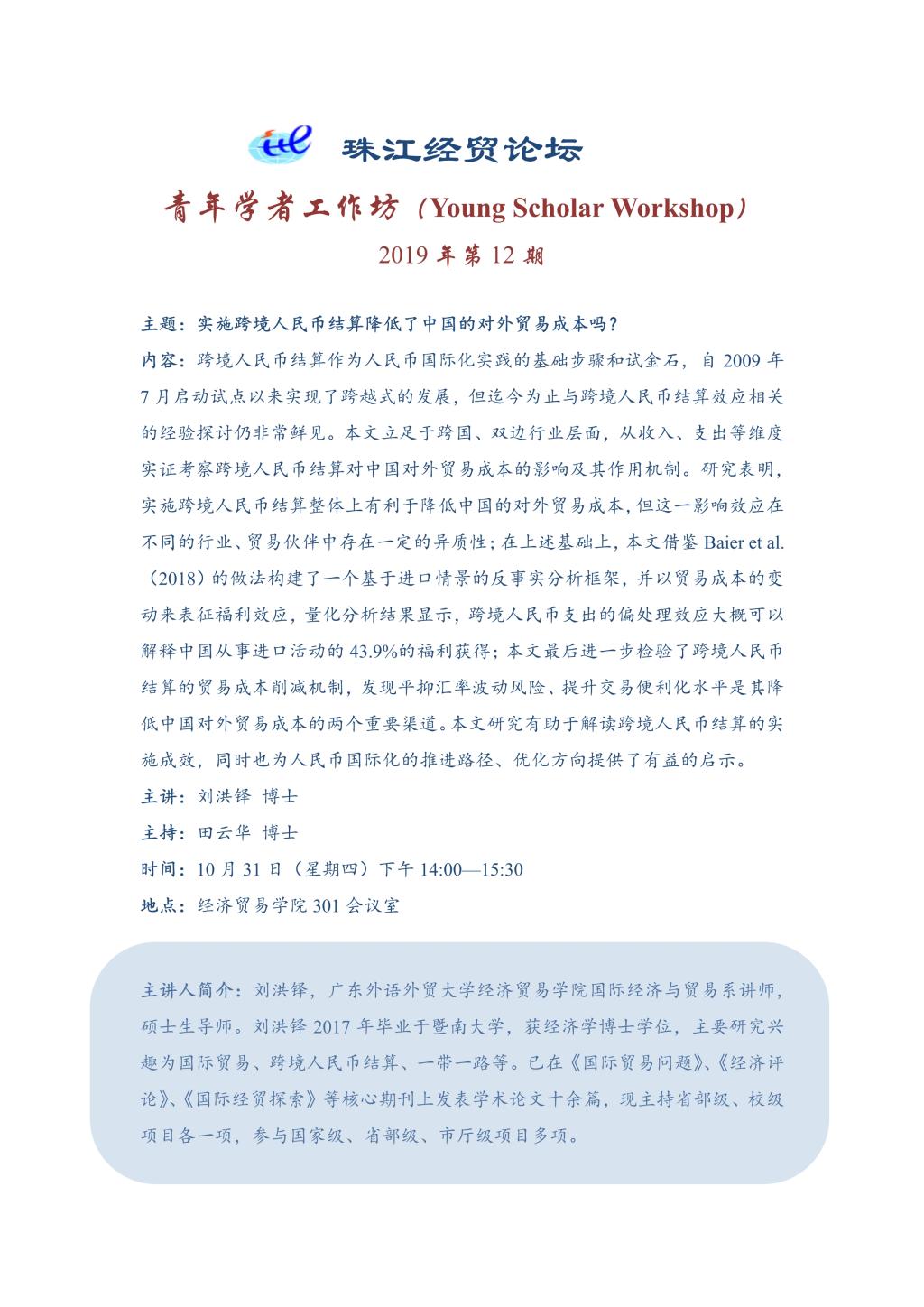 珠江经贸论坛-青年工作坊(第12期):实施跨境人民币结算降低了中国的对外贸易成本吗?