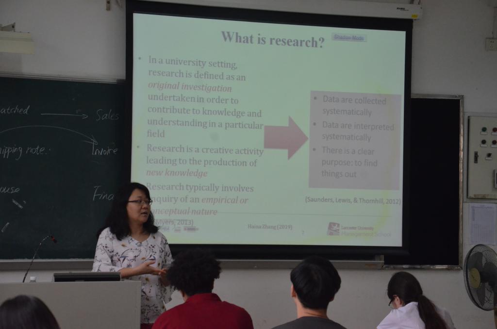2019年4月11日(周四)下午2:30-4:00,张海娜教授在南校区教学楼F212展开了以“Research Design”为主题的讲座。参加讲座的有太阳城集团2018级国际商务硕士生。