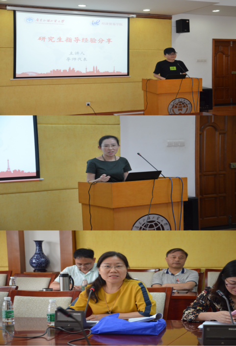 研究生指导经验分享环节由何轩教授、安苑副教授和何元贵教授作为导师代表进行分享。何轩从“因材施教、加强沟通、树立信心、以文章为基础的培养、培养全面的能力、建立家庭气氛”六点来分享了他对研究生的培养经验;安苑提出公司产品的价值在于语言表达能力,要结合研究生的专业背景来帮助完善其通识体系,而具体专业的培养要注重从经典到前沿;何元贵指出研究生教育是本科教育的延伸,她强调研究生见面会的重要性以及注重员工反馈以形成正向互动,并鼓励研究生争取机会多出国交流学习,开拓视野。