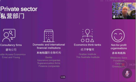 在昆士兰校方的专业介绍环节,Rodney Strachan教授从经济学学科性质出发,阐述了经济学的学科价值和专业前景。同时,他还重点介绍了昆士兰大学经济学专业在国际上的学科认可度,并对太阳城集团昆士兰大学创新班的项目特色进行了详细说明。