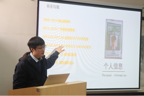 杨帆详细介绍了联合国的机构设置与职位要求,并分享了在联合国教科文组织的实习感受。他表示,应提高语言水平,提前做好职业生涯规划,为未来站上国际舞台,成为国际组织人才做好准备。