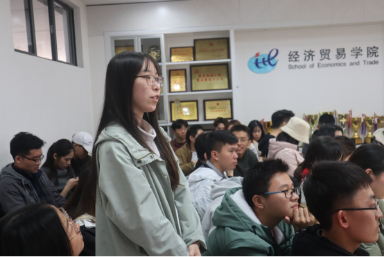 会上,汪子怡分享了在法国雷恩商公司学习与生活的心得,并结合任教经历为在座同学提出了硕士学习的建议。她鼓励同学们学好专业知识,及早做好留学规划。在外留学期间,应时刻做一个合格的中国代言人,成为中法交流的桥梁。