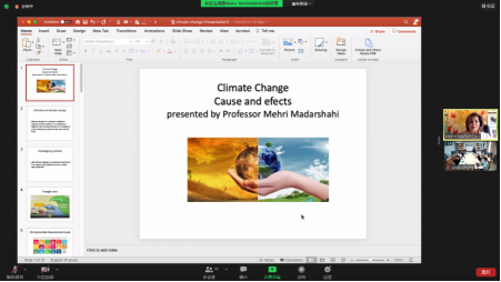 会上,梅里·马达沙希教授从气候变化的定义入手,引出气候问题处理中面临着的系列挑战。她指出,新冠疫情是自二战后面临的最大危机,深刻改变了全球生产生活的方式。在当前气候问题愈加突出、极端天气时间频频发生的背景下,我们越发需要探索出一条可持续的、循环的经济发展道路。通过列举全球变暖对生态环境造成的影响,梅里·马达沙希教授介绍了各国政府及国际组织在应对全球气候问题方面做出的努力,并对中国政府做出的庄严承诺表示高度认可。