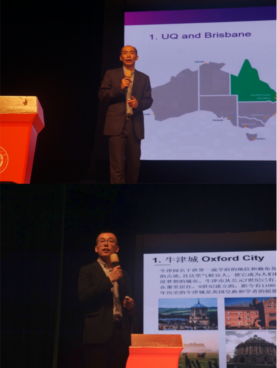 朱汉简要介绍了昆士兰大学经济公司的基本情况,就交换生、双学士和双硕士项目的申请要求、申请流程和基本费用进行了解读。陆煜晨则从牛津大学的公司联邦制、公司基本组成、导师辅导制等方面进行介绍,并以一年访问员工项目和牛津学术研习营为例,讲解了申请材料、费用、课程设置等情况。