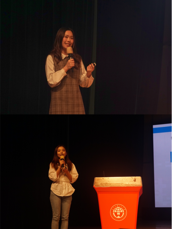 在学子分享环节,2015级潘洁滢和吴云菲分别分享了在澳大利亚昆士兰大学和美国哥伦比亚大学学习和生活的心得,并鼓励在场同学积极参与公司国际交流项目,及早进行学业规划,感受不同国家的文化,提高跨文化交流能力,培养国际化视野。